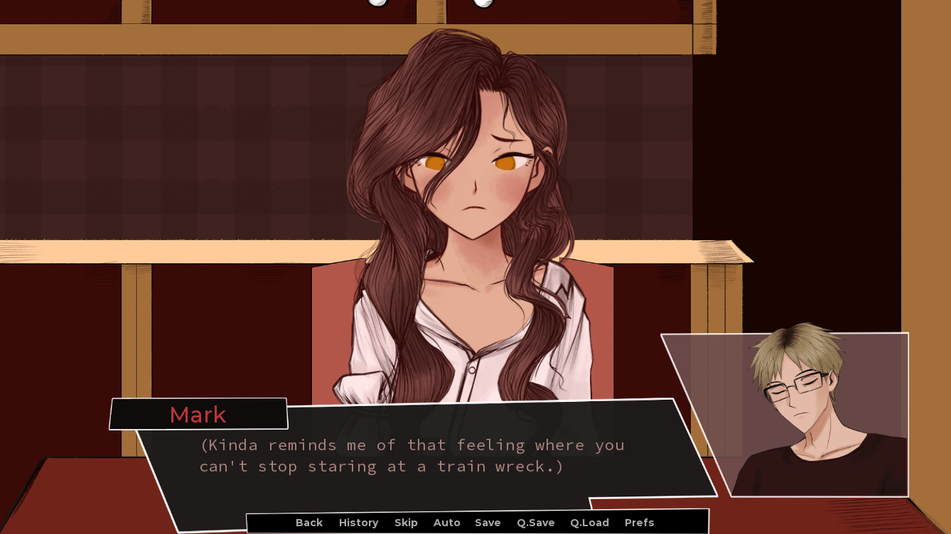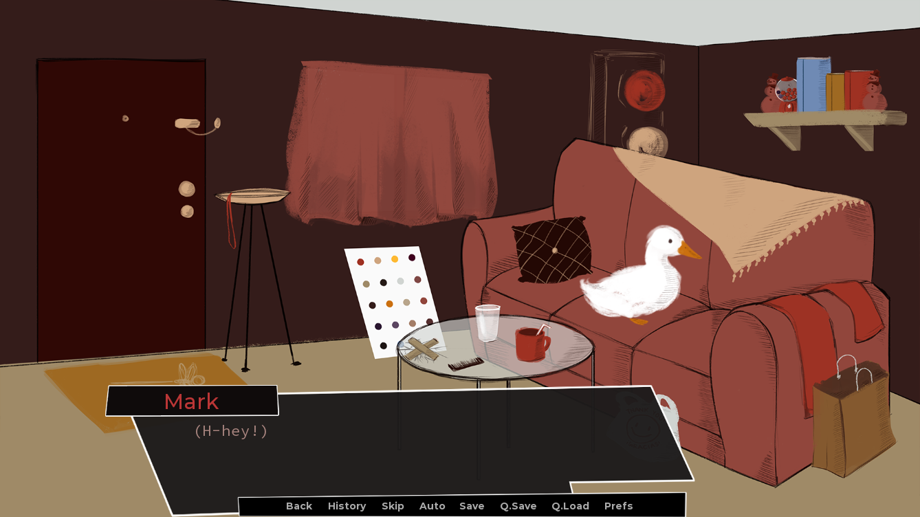Very interesting game :) I liked the art very much, and learning about Mark and what he does was neat. ^-^ I only had one problem (which might just be me) but occasionally unprompted during the game I'd be asked to save, even though I wasn't planning to exit the game. Maybe it was a ghost :0